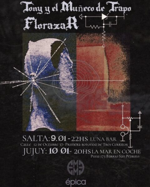 Este viernes 9 de enero, el tándem local de rock experimental Tony y el Muñeco de Trapo se presentará junto a Florazar, banda jujeña radicada en Córdoba, para dar inicio al 2026. Será en Luna Bar (12 de Octubre 37, primera rotonda de Tres Cerritos) desde las 22.