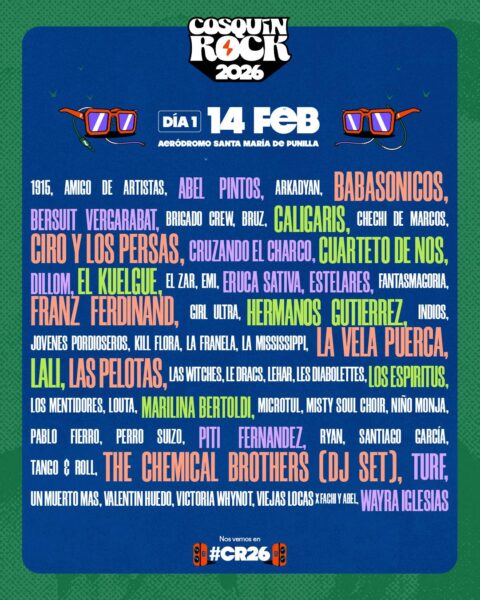Para el sábado 14 de febrero, día de los enamorados, se destacan Babasónicos, Ciro y los Persas, La Vela Puerca, Las Pelotas, Cuarteto De Nos, Dillom, Lali y Abel Pintos. Todos artistas que realizaron shows de estadios en el 2025. También los regresos de Bersuit Vergarabat, Caligaris, Eruca Sativa, Marilina Bertoldi, Louta, Fantasmagoria, entre otros. Y los debuts internacionales de The Chemical Brothers (Dj Set), Franz Ferdinand y Hermanos Gutierrez.