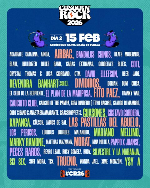 Cosquín Rock anuncia su grilla por día y pone a la venta las entradas para cada fecha. El festival se realizará los días 14 y 15 de febrero de 2026. El gran encuentro en las sierras cordobesas sigue ampliando su diversidad. Además del rock como protagonista, habrá como de costumbre pop, electrónica, trap, reggae, blues, entre otros géneros.
