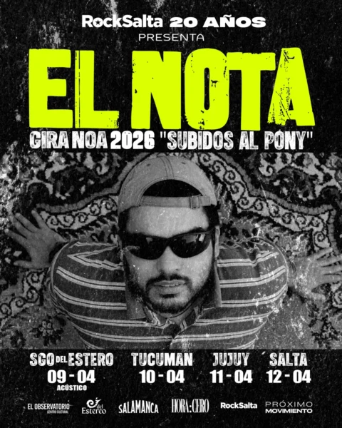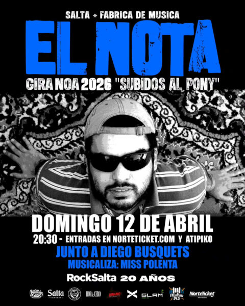 El Nota y su banda llegarán a la Ciudad de Salta el domingo 12 abril. Se presentarán en Fábrica de Música (Balcarce 875). Se dará puertas a las 20.30 con la musicalización de Miss Polenta. Abrirá la noche el cantautor salteño Diego Busquets, que presentará con su banda el reciente El Abismo (2026).